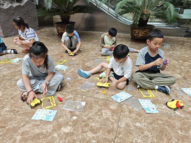 7月18日,海州区郁洲街道西凤社区开展“快乐暑假——穿越烽火岁月 点燃科学梦想”活动,为孩子们带来一场特别的科技启蒙和爱国教育。在参观完连云港市革命纪念馆后,活动迅速转入核心环节——动手制作反冲动力小车。