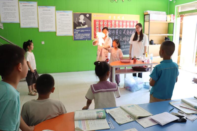 “手上造火”实验在确保绝对安全的前提下进行,成为活动的高光时刻。孩子们在导师“手把手”的保护和指导下,严格按照步骤操作,亲身体验了火焰在掌心升腾又瞬间熄灭的震撼。这一环节不仅直观展示了燃烧的可控条件,更着重强调了安全用火、科学防火的重要性,将安全教育融入科学探索。