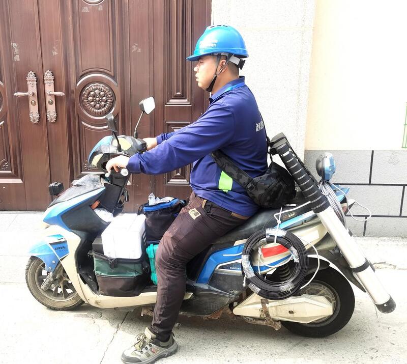 在炙热的阳光下,移动网络抢修队员的蓝色工作服格外醒目。他们穿着厚实的工作服,骑着满载工具箱和备用设备的电动车,穿行在热气蒸腾的街巷中。由于高温导致设备故障率上升,维修队员们24小时待命,确保接到报修后即刻响应。