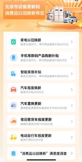 图为“京通”小程序的“北京市设备更新和消费品以旧换新专区”页面截图