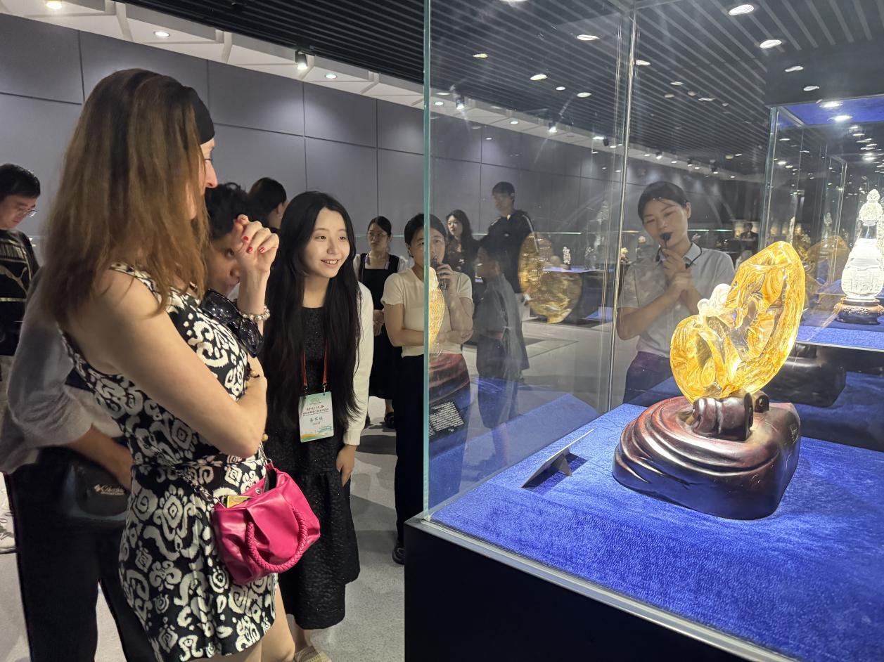 在“世界水晶之都”连云港东海县,采风团体会到了“世界”二字的具象化——这座博物馆的藏品远不止来自东海一地,而是来自全国乃至全世界,巴西、乌拉圭、莫桑比克、巴基斯坦、马达加斯加、赞比亚等地水晶皆在此闪耀。