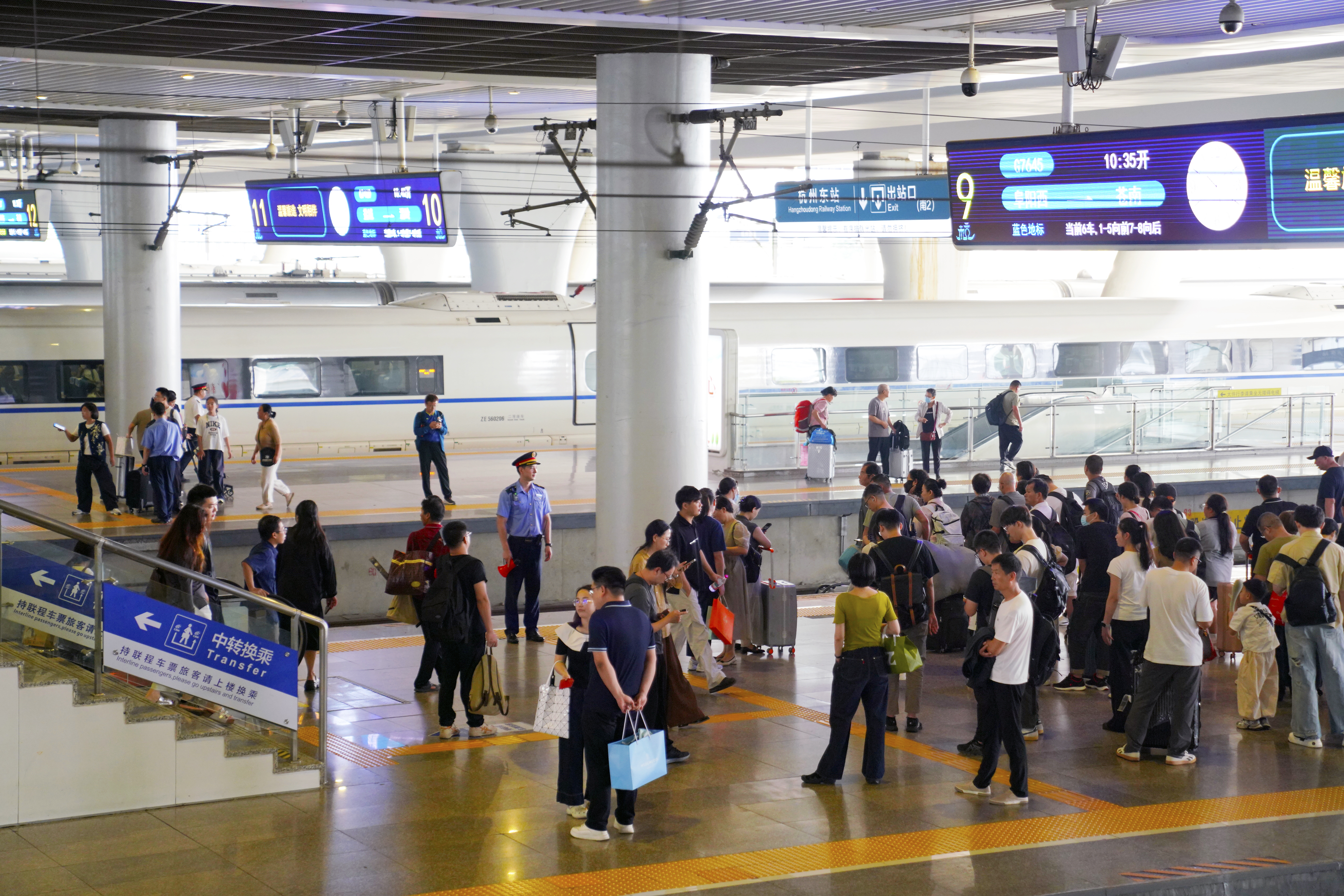 记者9月29日从中国铁路上海局集团有限公司(以下简称上铁集团)获悉,为期12天(9月29日-10月10日)的铁路国庆中秋假期运输今日启动,期间,上铁集团预计发送旅客4250万人次,铁路部门在启用图定66对高峰线的基础上,计划增开259对旅客列车。29日当天,长三角铁路预计发送旅客275万人次,增开旅客列车225列,其中,在郑州、长沙、南昌、阜阳、徐州、温州等多地间加开夜间动车组列车122列,精准匹配客流需求,精心服务旅客出行。