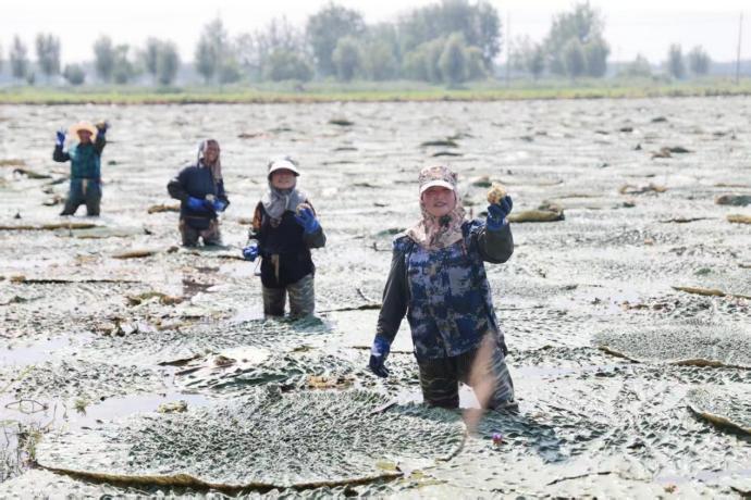 来场北村,在芡实田里采摘“致富果”