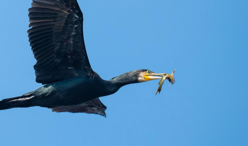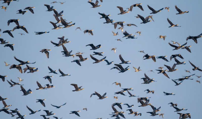作为候鸟迁徙路线上的重要节点,月牙岛湿地公园凭借持续优化的生态基底、丰富的水生动植物资源,早已成为鸟类栖息繁衍、中途停歇的“优选驿站”。月牙岛生物多样性观测站2025年最新监测数据显示,全岛累计监测到鸟类176种,其中包含小天鹅、震旦鸦雀、白眼潜鸭等16种国家二级重点保护鸟类——较2021年的129种实现大幅增长。此次集中到访的野生鸬鹚属国家“三有”保护动物,为大型水鸟,以鱼类为主要食物来源,擅长潜水捕食。通过AI监测系统实时追踪可知,这些鸬鹚将月牙岛作为越冬迁徙的关键中转站,预计短暂停歇补充能量后,将继续南飞前往最终越冬地。