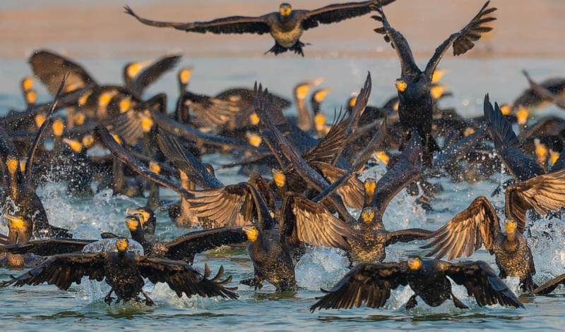 入冬以来,连云港市海州区月牙岛湿地公园再现生态盛景:数千只野生鸬鹚集结于870亩开阔湖面,或潜水觅食、嬉戏游弋,或振翅掠过波光水面,或停歇树梢晾晒羽毛。灵动身影与清澈湖水、沿岸冬景相映成趣,构成一幅生机盎然的自然画卷...【详细】