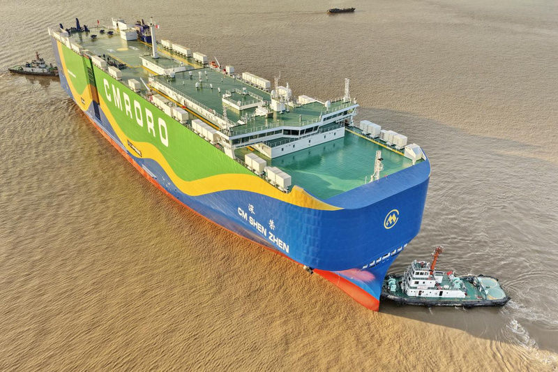日前,招商局重工(江苏)有限公司码头一片忙碌,在南通海关的监管下,我国自主研发的超大型甲醇双燃料动力滚装船“深荣”轮缓缓驶离泊位,开启首航。