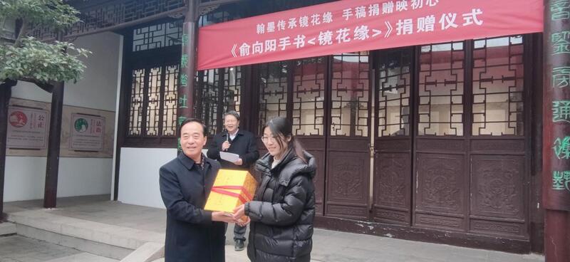 冬阳和煦,墨香萦绕。近日,以“翰墨传承镜花缘手稿捐赠映初心”为主题的俞向阳手书《镜花缘》捐赠系列活动,在古典文学名著《镜花缘》作者李汝珍的故里——连云港市海州区板浦镇李汝珍纪念馆隆重举行。活动由连云港市镜花缘研究会、李汝珍纪念馆联合主办,精心设置捐赠仪式、展馆参观与主题座谈三大核心环节,旨在搭建文化交流平台,凝聚多方共识,助力板浦古镇文化的打造与《镜花缘》文化当代活化传播。