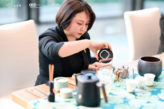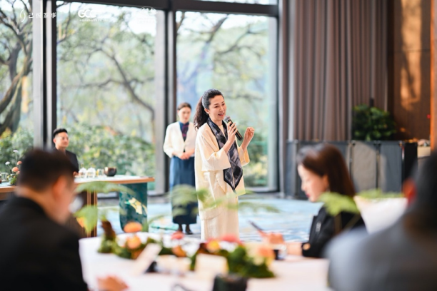 活动以"味觉的对话与意境的交融"为主线,完整展现了餐茶搭配的美学与实践。 己悦茶事主理人月媚担任主讲,米其林最佳侍茶师冀娜带领专业团队全程侍茶,从茶品遴选、风味解构到与菜肴的节奏呼应,层层展开了一幅中国饮食文化走向细腻化、国际化的生动图景。