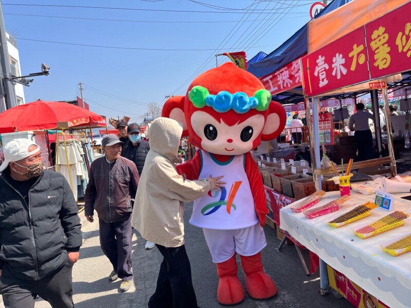 本届庙会以“体育+民俗”为鲜明特色,将省运元素、苏超氛围与传统庙会有机融合,打造特色文旅体育活动。4月4日上午专场启动仪式上,启动仪式现场,省运会吉祥物“猴宝”憨态可掬,与游客热情互动、合影留念;苏超连云港队球员亲临现场,与球迷亲切交流、开展公益捐赠,专业教练带领全场学习全民助威动作,观众高举手臂、齐声喊出助威口号,绿茵激情与古镇风韵完美契合。