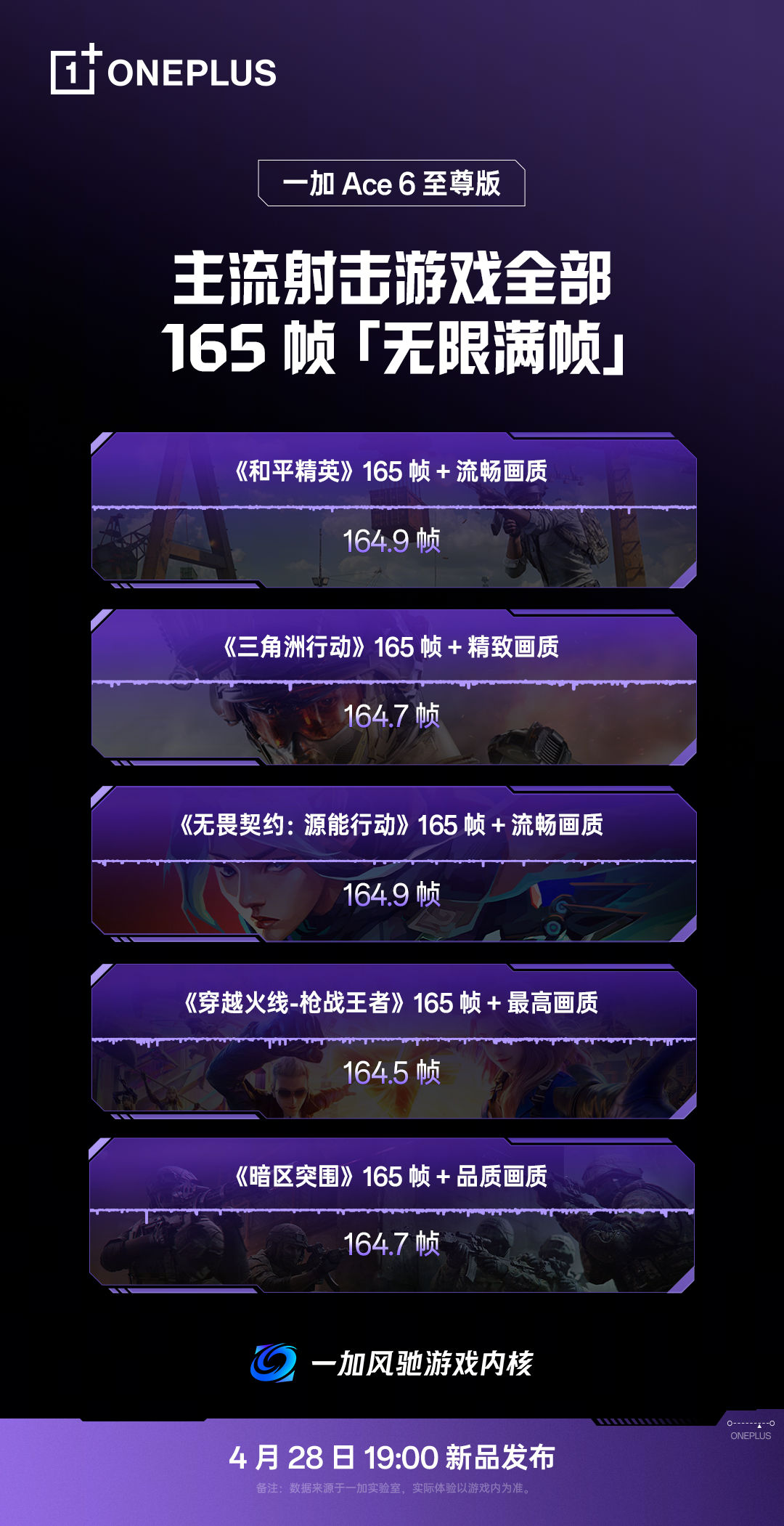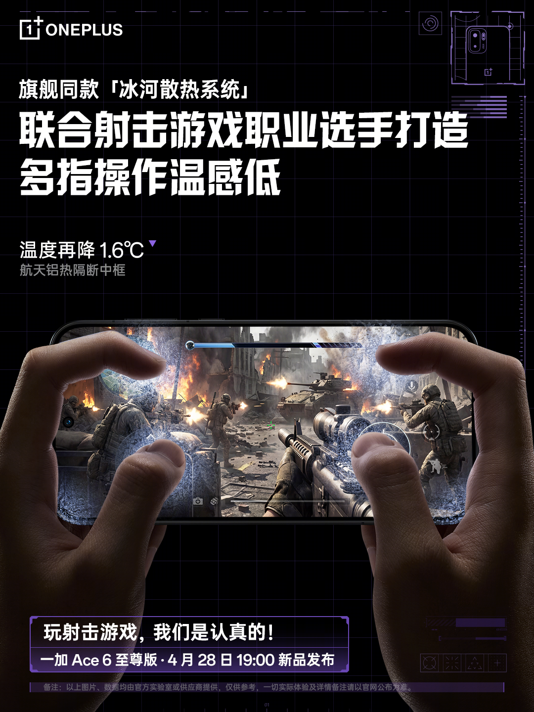 4月21日,一加手机正式官宣,一加 Ace 6 至尊版搭载天玑9500移动平台,出厂写入一加自主研发的行业首个芯片级游戏技术——全新一代「风驰游戏内核」,进一步激活天玑9500手机端最强GPU的极致性能,释放游戏主机级渲染能力。一加 Ace 6 至尊版聚焦射击游戏领域,在165 帧无限满帧, 1% Low帧表现,以及超高刷与顶级画质同开等方面均做到领先行业。同时,一加 Ace 6 至尊版搭载旗舰同款「冰河散热系统」,带来超大面积的「冰河VC」、3D 超薄双通道毛细结构、超临界导热石墨等创新技术,散热更快、温控更稳。专为FPS射击玩家打造,「枪神首选」一加 Ace 6 至尊版将于4月28日正式发布。